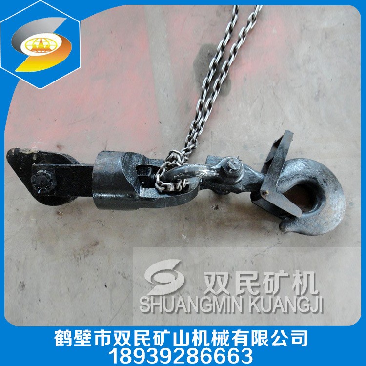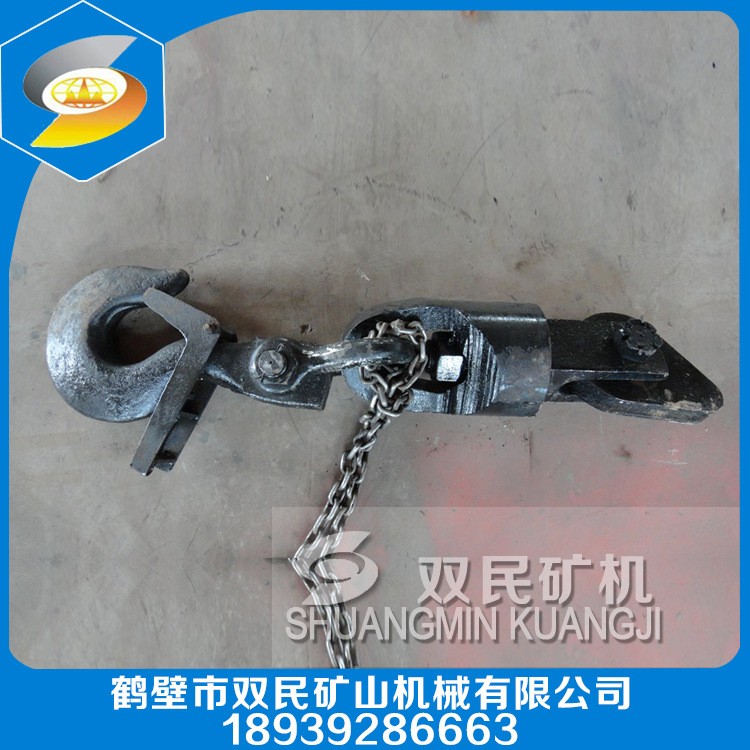 鉤頭及連接裝置,簡(jiǎn)稱為鉤頭裝置。 該產(chǎn)品結(jié)構(gòu)簡(jiǎn)單,使用性能單一。零件全部由鍛件加工而成,鋼絲繩連接采用了兩種型式,其中5t、7t采用不偏心護(hù)繩環(huán),板卡連接;9t