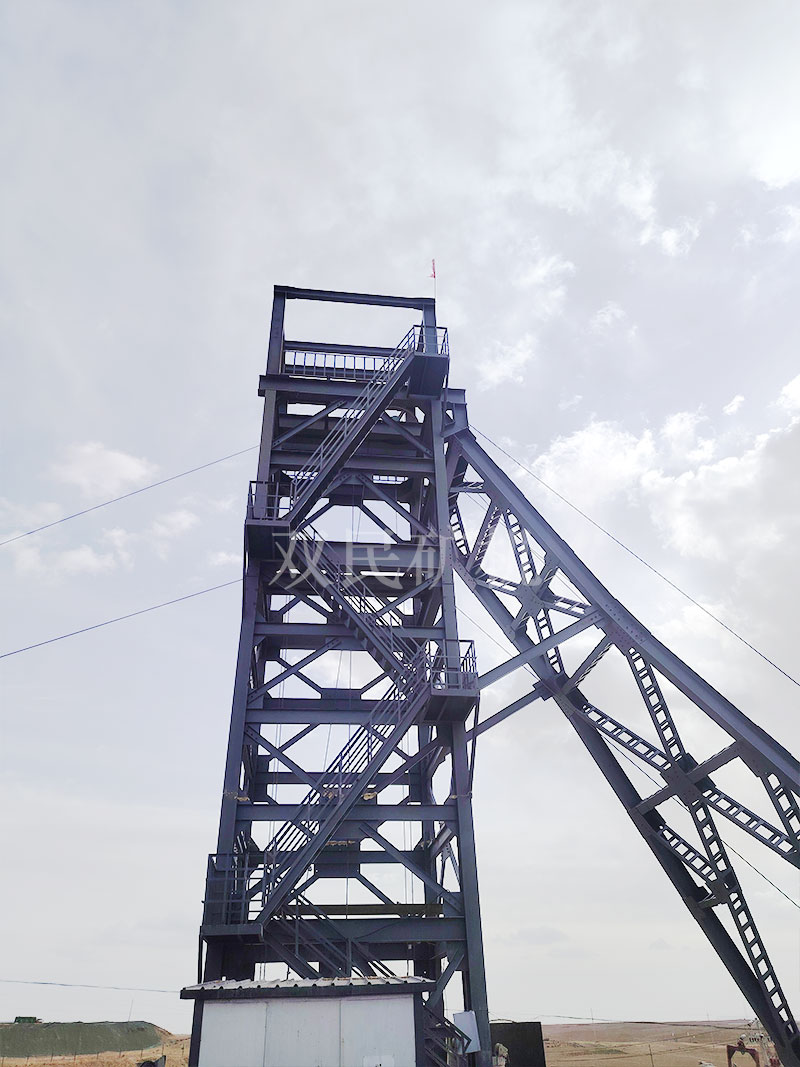 斜撐式永久井架主要特征和優點: 單斜撐式井架是隨著落地式多繩地上計技術發展而產生的,具有造型獨特,結構簡單,受力合理,工程量少,經濟實用,技術進步的特點。