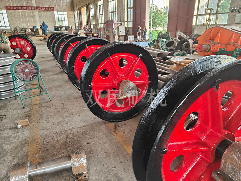 鑿井懸吊天輪是按JZ系列鑿井絞車鋼絲繩最大靜張力分別為5t(50kN),10t(100kN),16t(160kN),25t(250kN),40t(400kN)進行配套設計的。