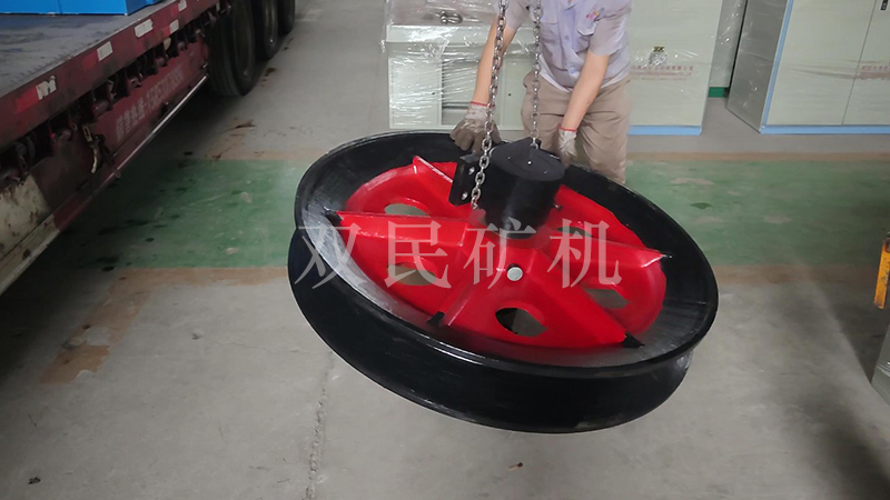 懸吊天輪又按鑿井絞車的性能分為單槽天輪和雙槽天輪兩類,其中單槽天輪七種,雙槽天輪十種。一律采用固定心軸、整體軸承座支承,軸承座和繩輪均采用HT20-40普通鑄鐵。" />