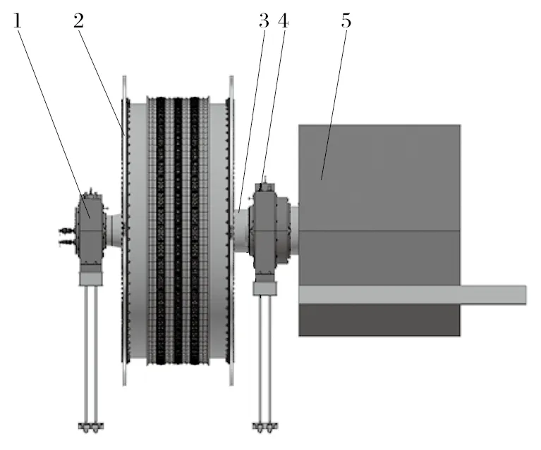 大型直聯摩擦式提升機主要由主軸、摩擦輪、滾動軸承、軸承座、軸承蓋、直聯電動機等部件組成,如圖1 所示。