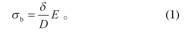 張家銘研究了纏繞式提升機(jī)鋼絲繩的振動(dòng)和繩鼓力學(xué)特性。假設(shè)沒(méi)有進(jìn)行捻制的鋼絲繩直徑為 δ,鋼絲繩在直徑為 D 的摩擦輪 (天輪) 上彎曲,此時(shí),鋼絲繩的彎曲應(yīng)力